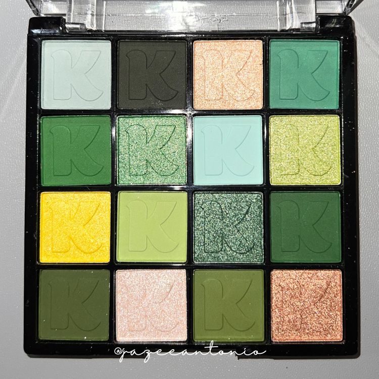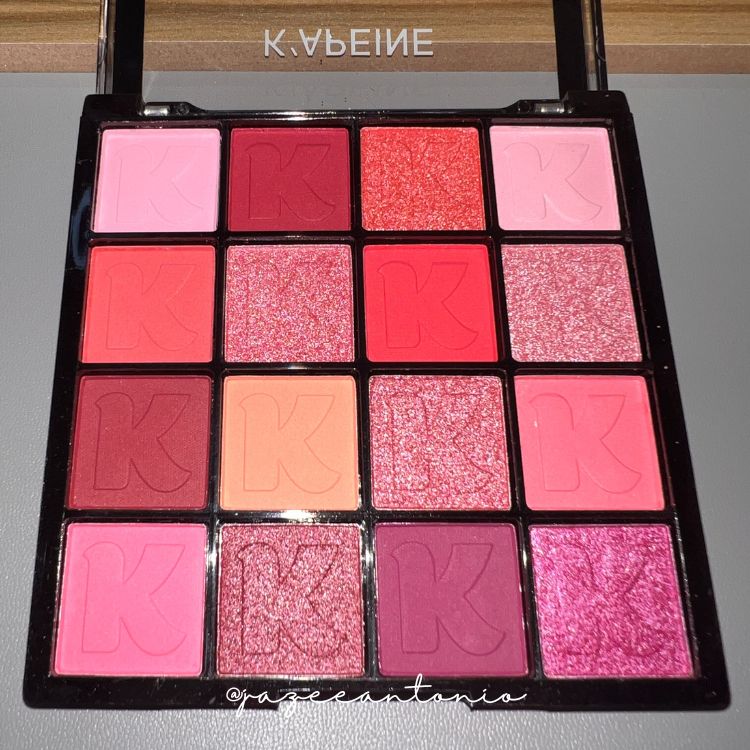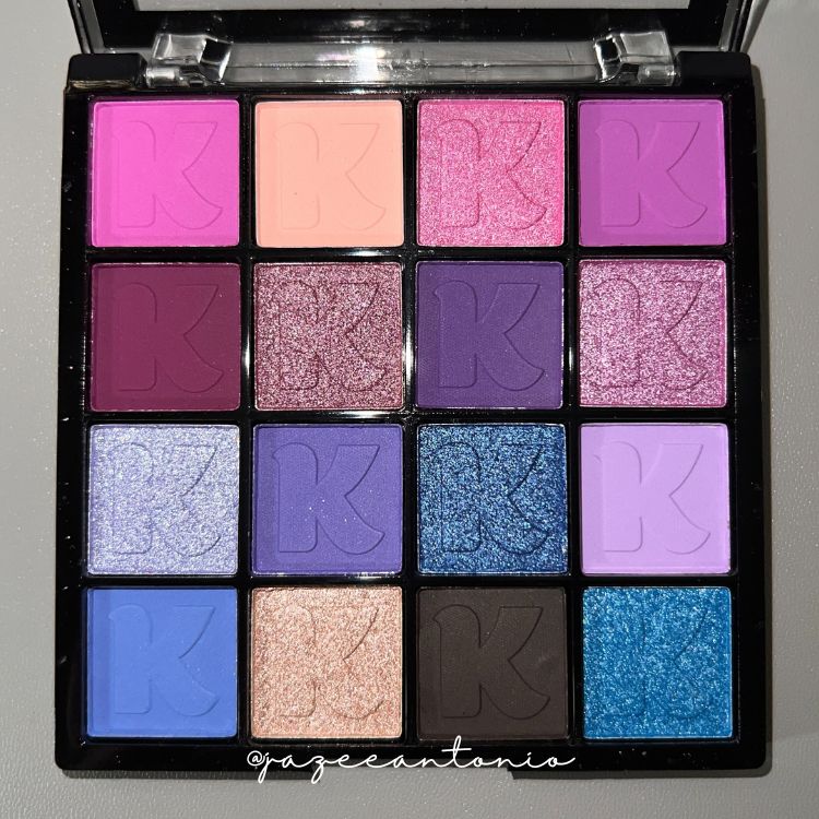 Upon unboxing from its holographic box, you’re greeted with a 16-pan compact eyeshadow palette that’s travel-friendly. Each pan has a neatly pressed eyeshadow powder with a letter K emboss.